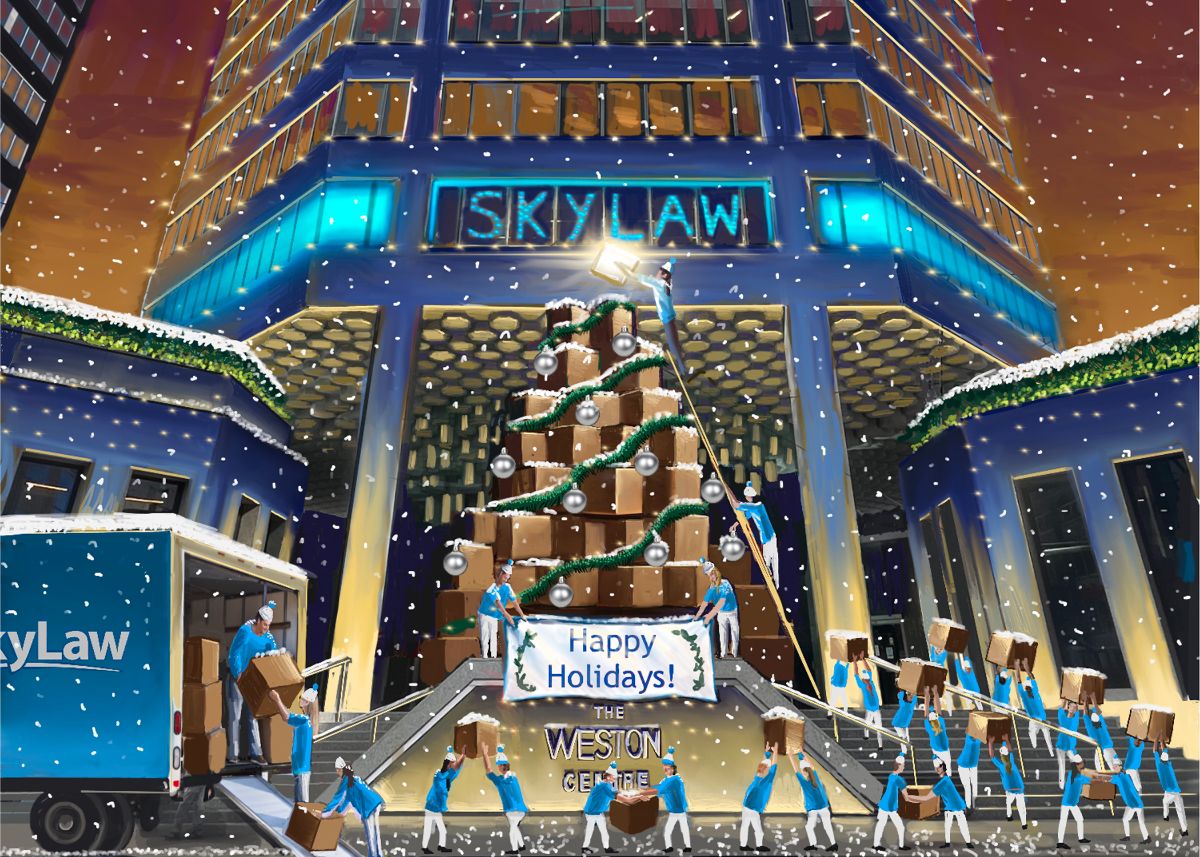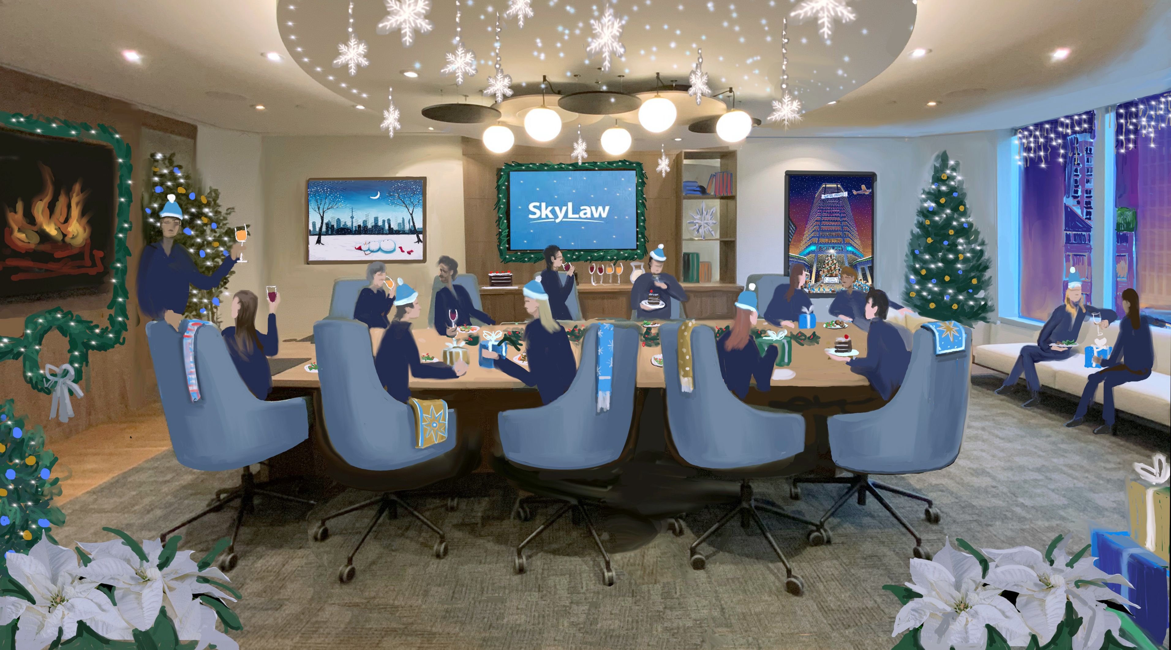 Pictured above: A festive celebration in SkyLaw's boardroom – Digital artwork by Martin Russocki, 2025.